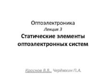 Оптоэлектроника Лекция 3 Статические элементы оптоэлектронных систем Краснов