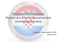 Участие Республики Хорватия в интеграционном взаимодействии Выполнил студент