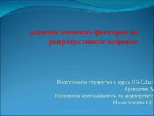 влияние внешних факторов на репродуктивное здоровье Подготовила студентка