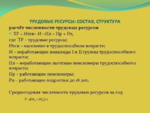 ТРУДОВЫЕ РЕСУРСЫ СОСТАВ СТРУКТУРА расчёт численности трудовых ресурсов