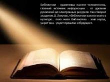 Библиотеки — хранилища памяти человечества главный источник информации