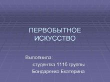 ПЕРВОБЫТНОЕ ИСКУССТВО Выполнила студентка 111 б группы Бондаренко
