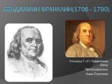 БЕНДЖАМИН ФРАНКЛИН 1706 — 1790 Ученицы 7 Г Смирновой