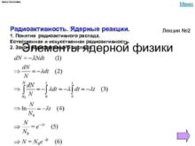 Made by Yureva Svetlana Меню Радиоактивность Ядерные реакции