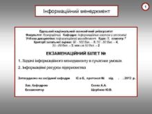 1 Інформаційний менеджмент Одеський національний економічний університет Факультет