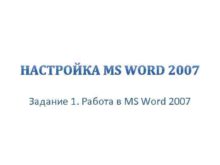 НАСТРОЙКА MS WORD 2007 Задание 1 Работа в
