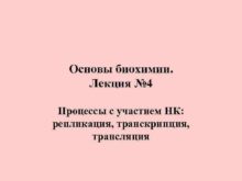 Основы биохимии Лекция 4 Процессы с участием