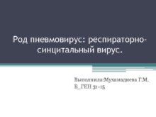 Род пневмовирус респираторносинцитальный вирус Выполнила Мухамадиева Г М