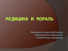 МЕДИЦИНА И МОРАЛЬ Выполнила студентка 240 группы Педиатрического
