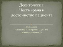 Деонтология Честь врача и достоинство пациента Выполнила Студентка