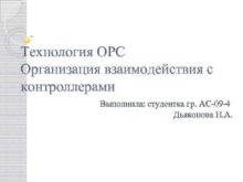 Технология OPC Организация взаимодействия с контроллерами Выполнила студентка