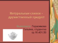 Натуральные сливки дружественный продукт Выполнила Герасимова Татьяна