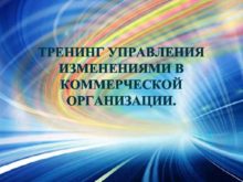 ТРЕНИНГ УПРАВЛЕНИЯ ИЗМЕНЕНИЯМИ В КОММЕРЧЕСКОЙ ОРГАНИЗАЦИИ Цель