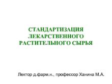 СТАНДАРТИЗАЦИЯ ЛЕКАРСТВЕННОГО РАСТИТЕЛЬНОГО СЫРЬЯ Лектор д фарм н