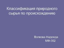 Классификация природного сырья по происхождению Волкова Надежда МФ-302