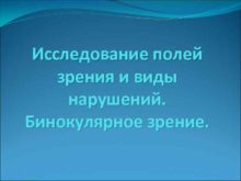 Исследование полей зрения и виды нарушений Бинокулярное зрение