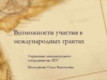 Возможности участия в международных грантах Управление международного сотрудничества