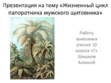 Презентация на тему Жизненный цикл папоротника мужского щитовника