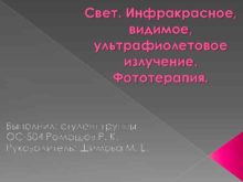 Свет Инфракрасное видимое ультрафиолетовое излучение Фототерапия Выполнил студент