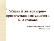 Жизнь и литературнокритическая деятельность К Аксакова Выполнила студентка
