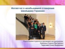 Фотоотчет о незабываемой стажировке Швейцария-Германия Подготовили студенты и