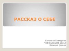 РАССКАЗ О СЕБЕ Балонова Екатерина Чермашенцева Дарья Бронина