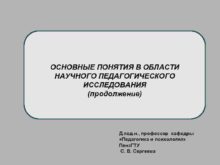 ОСНОВНЫЕ ПОНЯТИЯ В ОБЛАСТИ НАУЧНОГО ПЕДАГОГИЧЕСКОГО ИССЛЕДОВАНИЯ продолжение