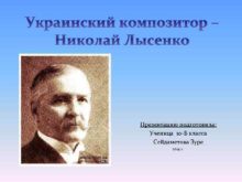 Украинский композитор Николай Лысенко Презентацию подготовила Ученица
