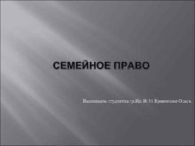 СЕМЕЙНОЕ ПРАВО Выполнила студентка гр Ип-И-51 Ермоленко Ольга