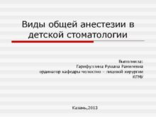 Виды общей анестезии в детской стоматологии Выполнила Гарифуллина