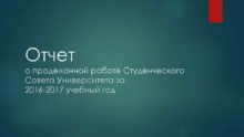 Отчет о проделанной работе Студенческого Совета Университета за