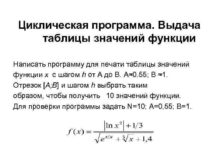 Циклическая программа Выдача таблицы значений функции Написать программу