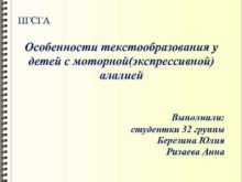 ПГСГА Особенности текстообразования у детей с моторной экспрессивной алалией