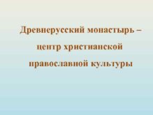 Древнерусский монастырь центр христианской православной культуры