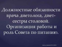 Должностные обязанности врача диетолога диетсестры столовой Организация работы