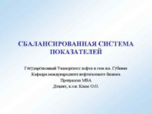 СБАЛАНСИРОВАННАЯ СИСТЕМА ПОКАЗАТЕЛЕЙ Государственный Университет нефти и газа