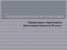 Геоцентрическая система мира Презентацию подготовила Мингалиева Камилла 10
