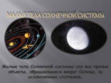 МАЛЫЕ ТЕЛА СОЛНЕЧНОЙ СИСТЕМЫ Малые тела Солнечной системы-это