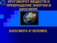 КРУГОВОРОТ ВЕЩЕСТВ И ПРЕВРАЩЕНИЕ ЭНЕРГИИ В БИОСФЕРЕ БИОСФЕРА