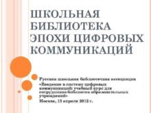 ШКОЛЬНАЯ БИБЛИОТЕКА ЭПОХИ ЦИФРОВЫХ КОММУНИКАЦИЙ Русская школьная библиотечная
