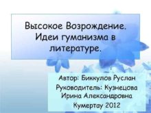 Высокое Возрождение Идеи гуманизма в литературе Автор Биккулов