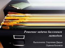 Решение задачи балловым методом Выполнила Сергеева Дарья Оценка