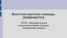 Визитная карточка команды ЭКОИНФОТЕХ ГКПОУ Междуреченский горностроительный техникум