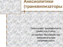 Анксиолитики транквилизаторы Уменьшают выраженность тревоги и страха
