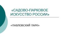 САДОВО-ПАРКОВОЕ ИСКУССТВО РОССИИ ПАВЛОВСКИЙ ПАРК КОНТРОЛЬНАЯ