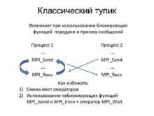 Классический тупик Возникает при использовании блокирующих функций передачи