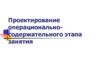 Проектирование операциональносодержательного этапа занятия Цель n Проектирование