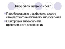 Цифровой видеосигнал l Преобразование в цифровую форму стандартного
