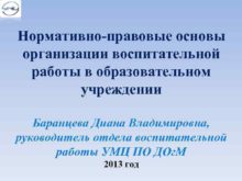 Нормативно-правовые основы организации воспитательной работы в образовательном учреждении