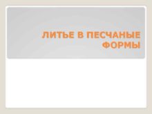 ЛИТЬЕ В ПЕСЧАНЫЕ ФОРМЫ Метод литья металлов